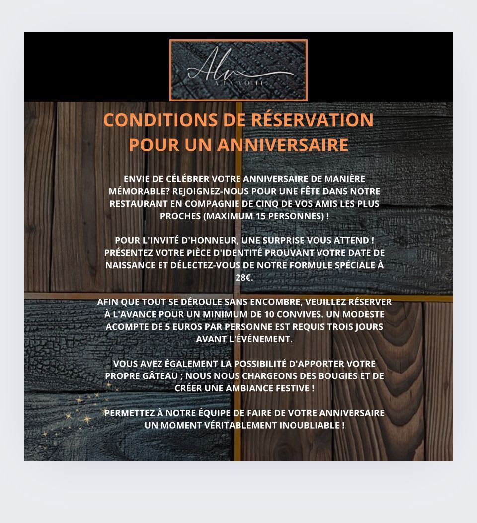 Nous mettons notre établissement à disposition les dimanches et jours fériés pour célébrer vos occasions spéciales sur demande.